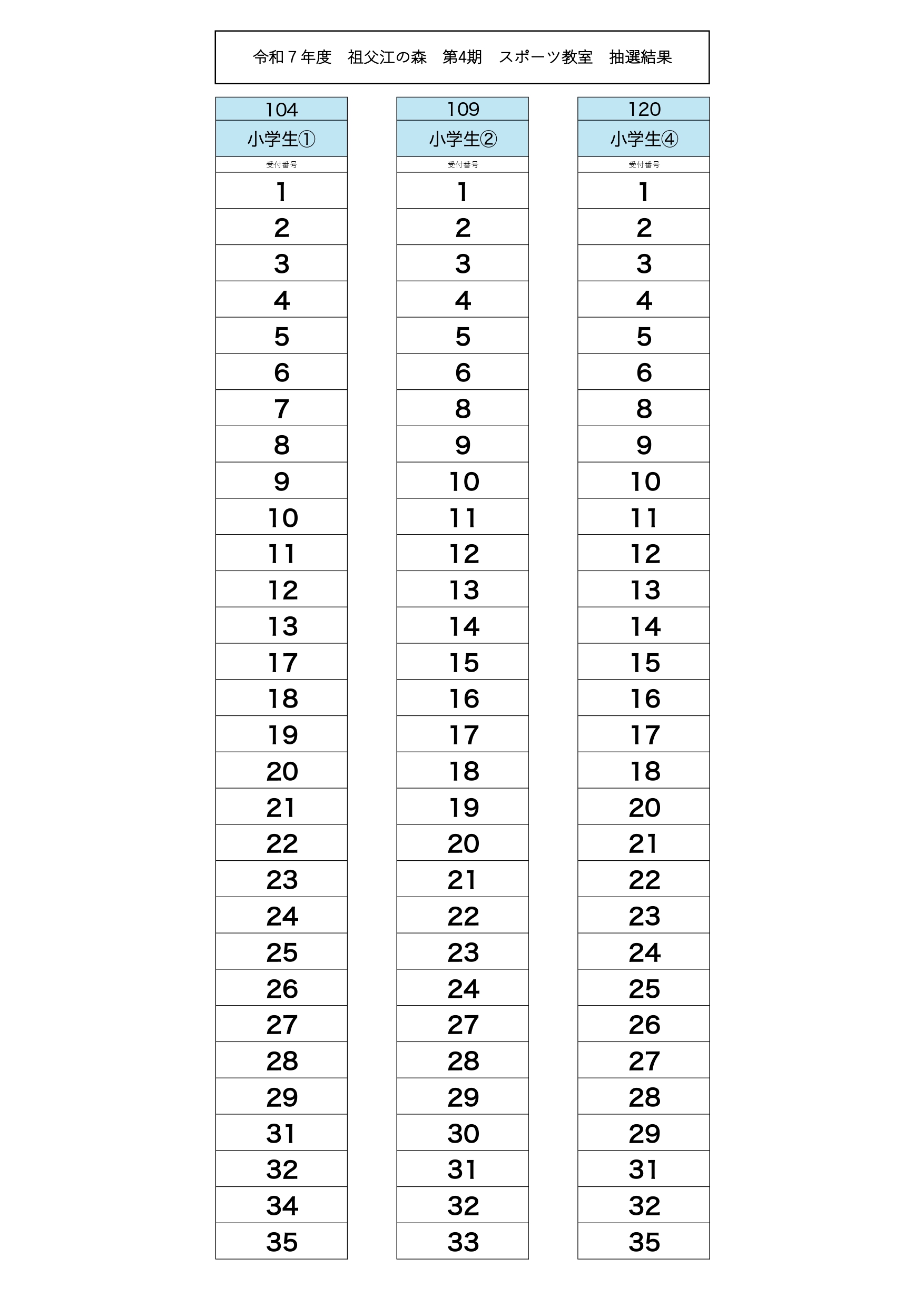 【令和7年度 第2期祖父江の森スポーツ教室】 抽選の結果発表です!今回抽選対象だったクラスは102・1...